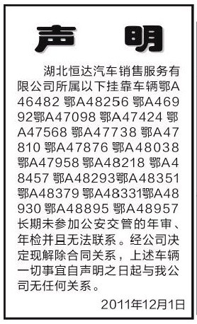 (武汉市登报解除关系怎么办理)车辆挂靠好合同解除声明格式