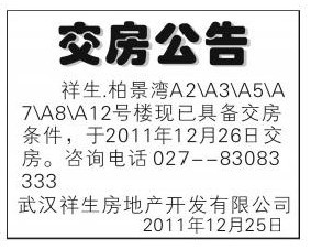 (交房公告登报)武汉市交房公告登报 长江商报登报最便宜|交房公告登报格式