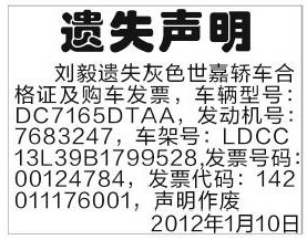 (车辆合格证遗失声明登报 购车发票丢失声明)先登报 再付款