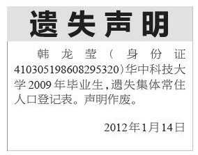 (集体常住人口登记表遗失声明登报)100块 户口迁移表登报声明遗失模板 户口登记底页遗失声明登报格式