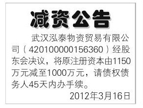 (减资公告登报模板)先登报 再付款 减资公告登报费用200元