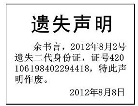 站内公告 ·《大学毕业生就业协议书登报格式》 ·湖北日报遗失声明挂失公告登报联系电话 ·报到证遗失声明登报(江汉大学) ·武汉遗失声明登报 营业执照遗失 组织机构代码证遗失 公章遗失 财务章遗失等等 ·身份证丢失登报最低价(武汉)