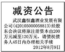 (减资公告)登报 先登报再付款 方便安全快捷 武汉减资公告登报 公司减资登报公告 减资报告怎么登报 公司减资怎么登报